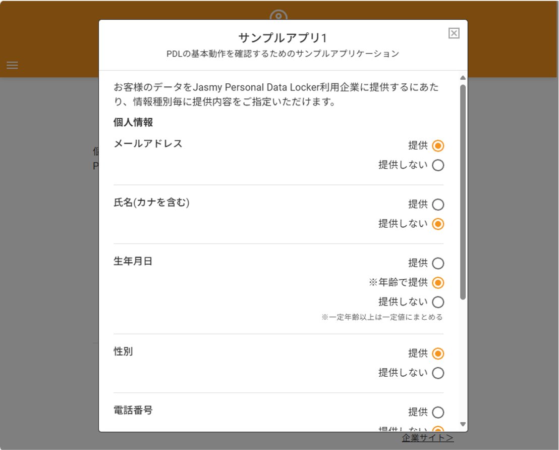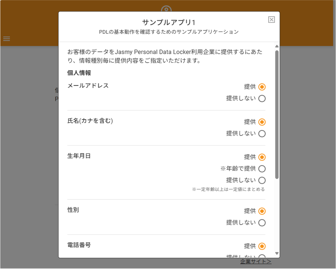 個人データの提供可否を設定することができます。